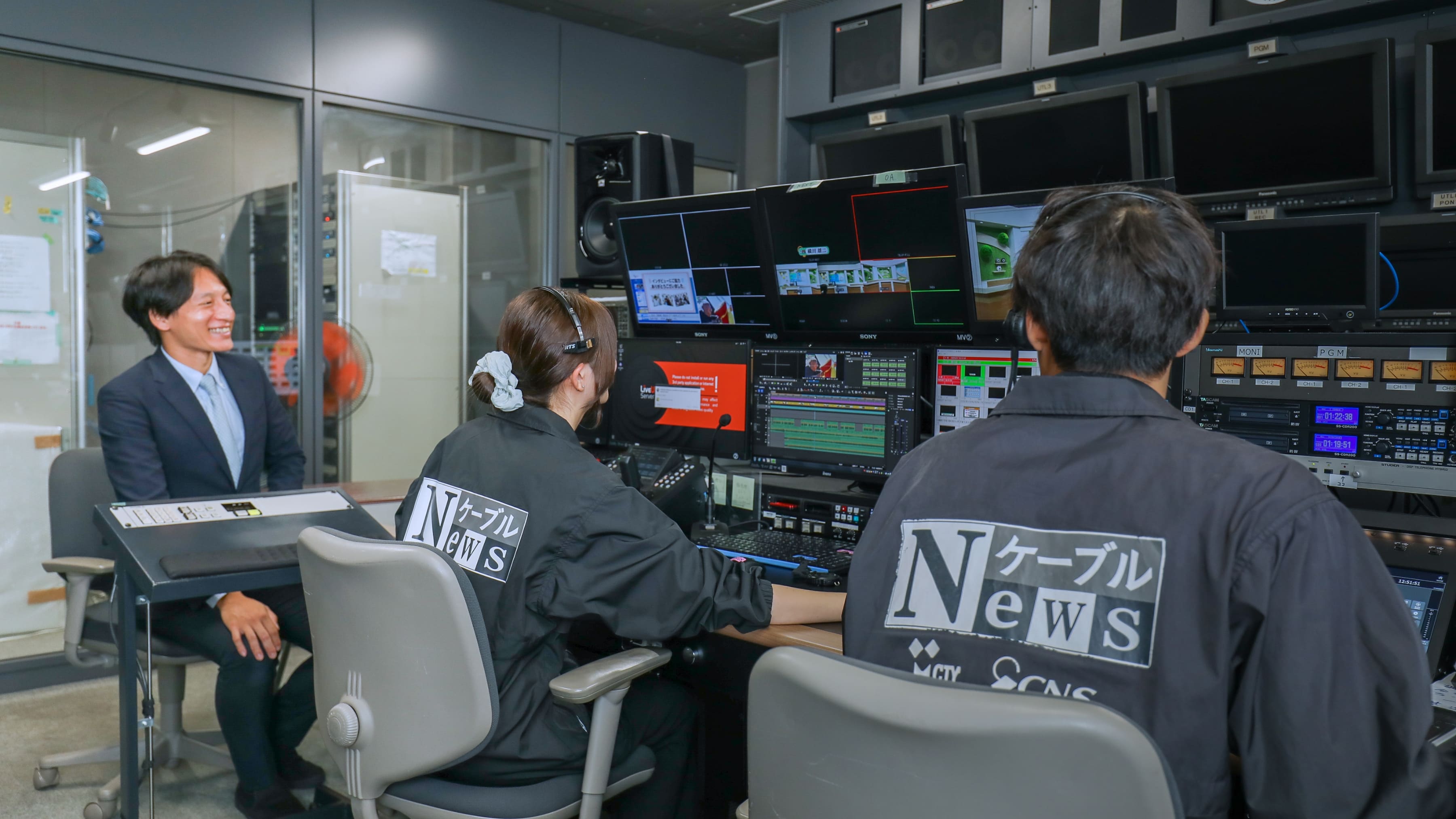 情報発信課は、テレビ、アプリ、ホームページ、SNSなどを通じて、地域への情報発信を総合的に担う重要な部門です。地域の魅力や課題などを掘り下げて取材し、地域と視聴者を“つなぐ”役割を担っています。