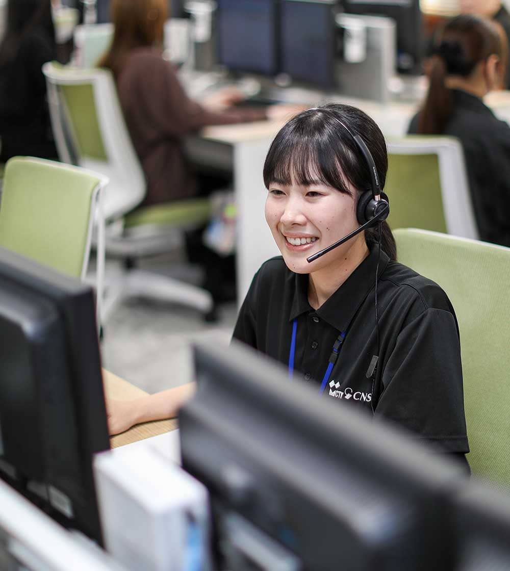 電話やホームページ、チャットなどを通してお客様から寄せられるお問い合わせ全般を対応しています。お客様に商品やサービスをご案内するだけでなく、サービスの不具合へのサポートや、営業課・訪問サポート課の訪問アポイント調整を行っています。